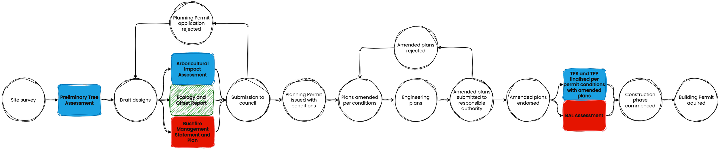 When working closely with the design team, we can identify potential conflicts in the design with the arboricultural and ecological aspects of the planning scheme and council local laws, providing you with a better chance of keeping your project out of the constant RFI loop.